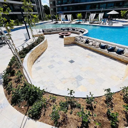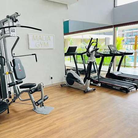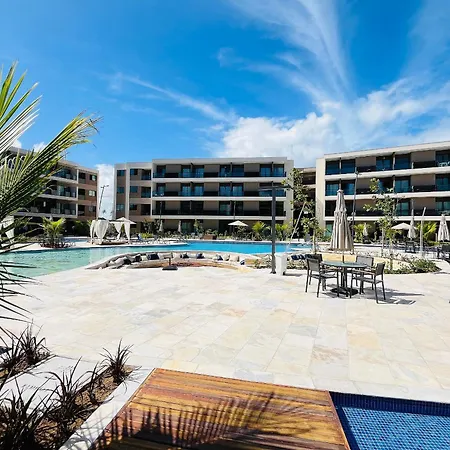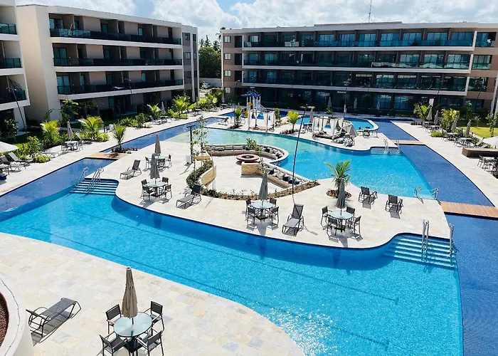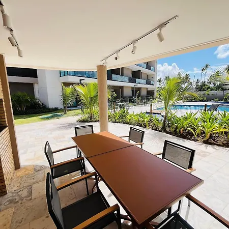 プールの景色を望むFlat Em Muro Alto - Porto De Galinhas - Malia B101 別荘は、Estrada Acesso para Praia de Muro Alto e Camboaから歩いてたった5分離れたところに位置しています。 Wi-Fiと無料の専用駐車場を提供するこの宿泊施設は、プライア・デ・ムーロ・アウトすぐ近くです。